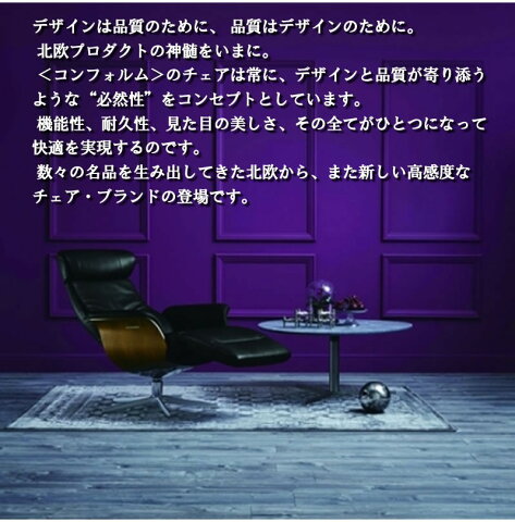 リクライニングチェアー オットマン(足置き)一体型 CONFORM INBUILD(コンフォルム インビルド) アイス色/ブラック 総本革張り Timeoutシリーズ リクライニング回転機能付き スウェーデン発の、人間工学に基づいたパーソナルチェアブランド。